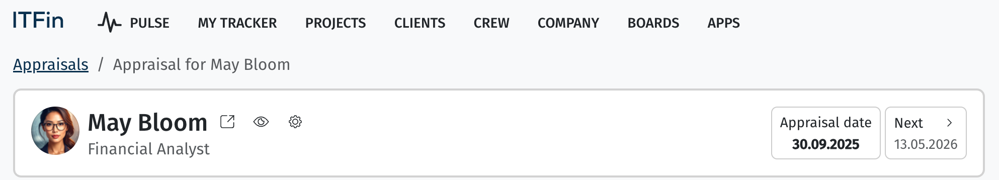 PAs can also be created manually in the Crew > Appraisal section or from the employee’s profile using the +Add new option.