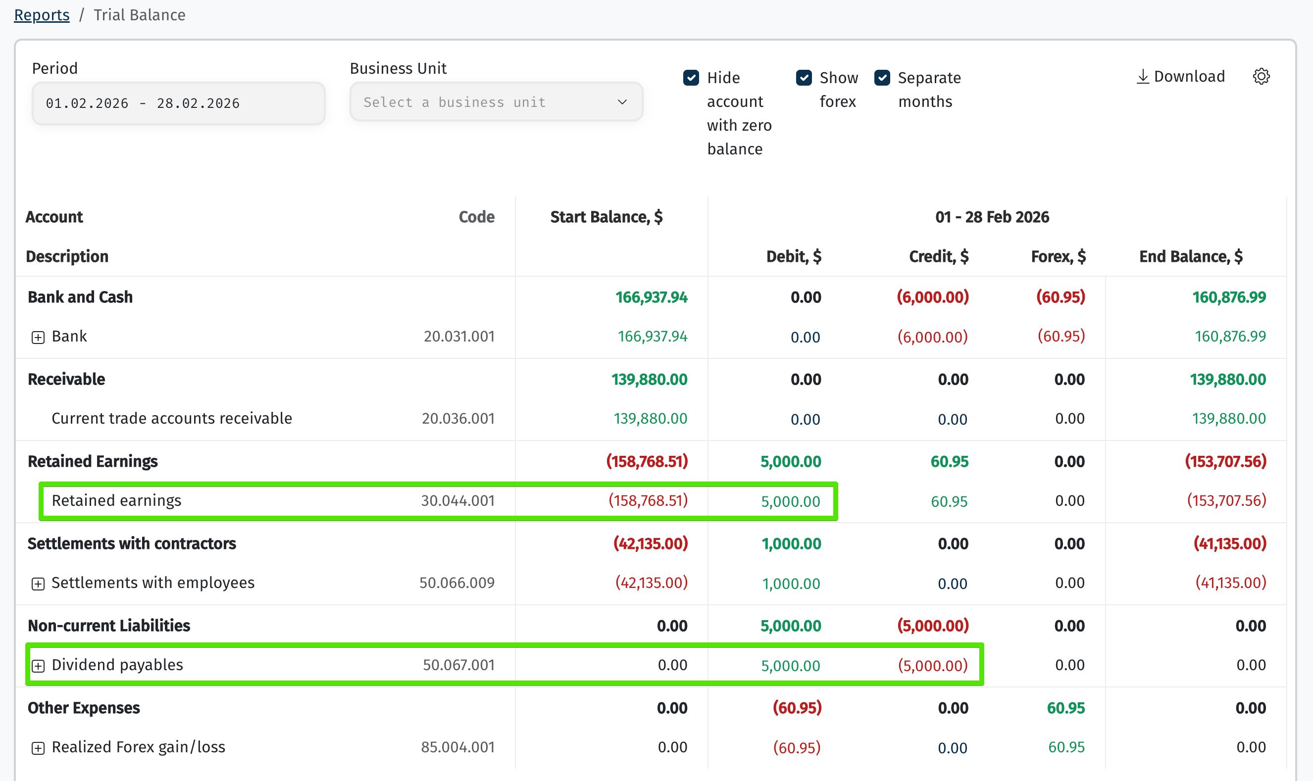 Цю виплату ми можемо перевірити у звіті Оборотно-сальдова відомість (Trial Balance).